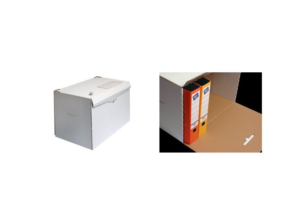 Archivní systém je určen pro 6 ks pořadačů se hřbetem 8 cm nebo 10 ks pořadačů se hřbetem 5 cm.Vlnitá lepenka s potiskem, bílo-hnědá. Kód: 3583