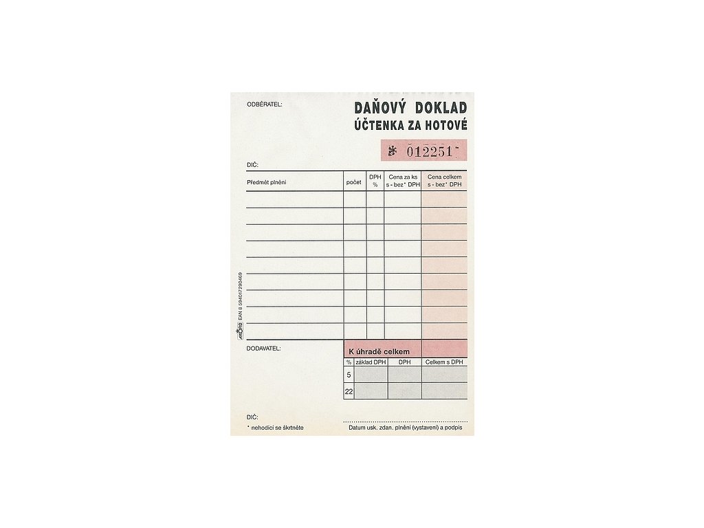 A6 přímopropisující papír blok 2x50 listů dvoubarevný, perforovaný Kód: 2025