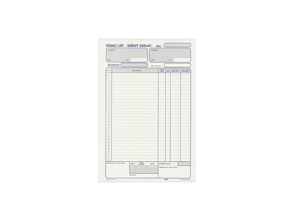 Dodací list - daňový doklad - typ A A0013