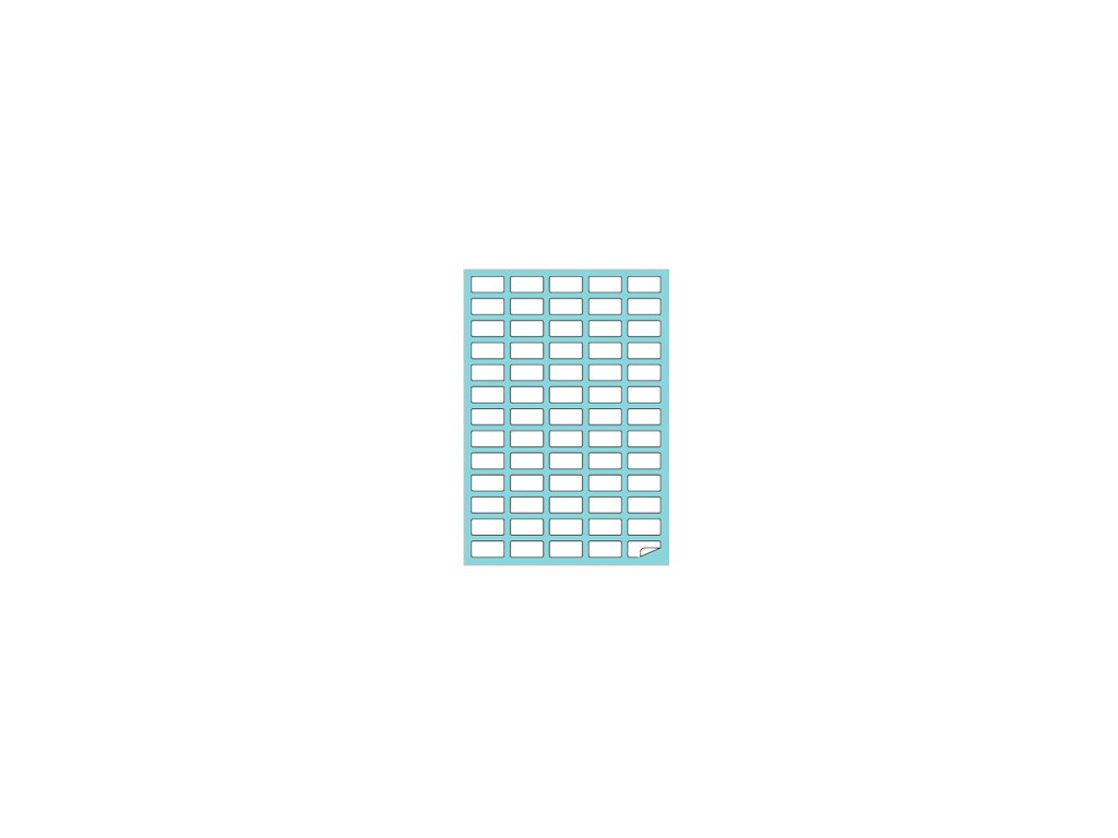 6500 ks samolepících etiket na arších. Vyrobeny násekem horní samolepicí vrstvy se silně lepivým akrylátovým lepidlem na vodní bázi, pro použití v laserových a inkoustových tiskárnách a kopírovacích strojích, materiál se vyznačuje minimální prašností a zajišťuje kvalitní a čistý potisk s ostrými konturami.
