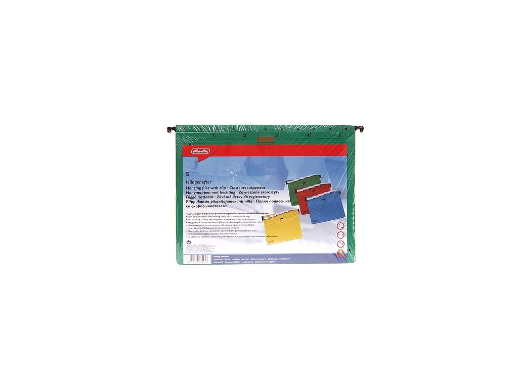 Závěsné zakládací desky A4 do kartotéky s rychlovazačem. Součástí desek je plastový rozlišovač s vyměnitelným papírovým štítkem. Rozlišovač je možné upevnit v 5 různých pozicích. Syté barvy. Kód: 2374