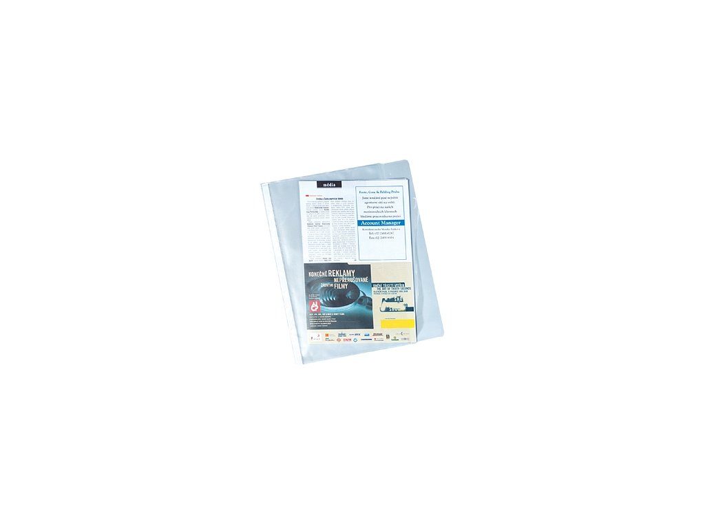 Prospektový obal B4, čirý - matný, 110 mic, euroděrování, po straně otevřený s klopou. Základní balení: 1 ks Balení fólie: 50 ks Kód: 2212