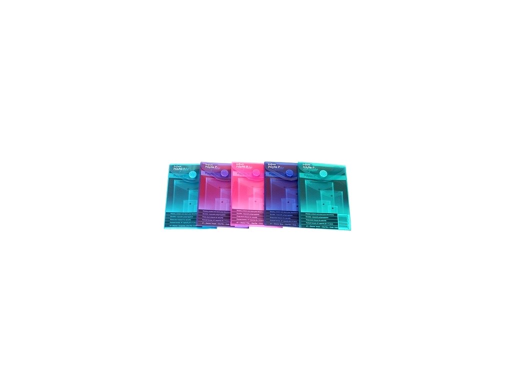 Spisové desky, materiál polypropylen, formát A7, průhledné, typ ELECTRA, zavírání jedním drukem. Mix barev. Základní balení: 1 ks Balení fólie: 5 ks Kód: 2907