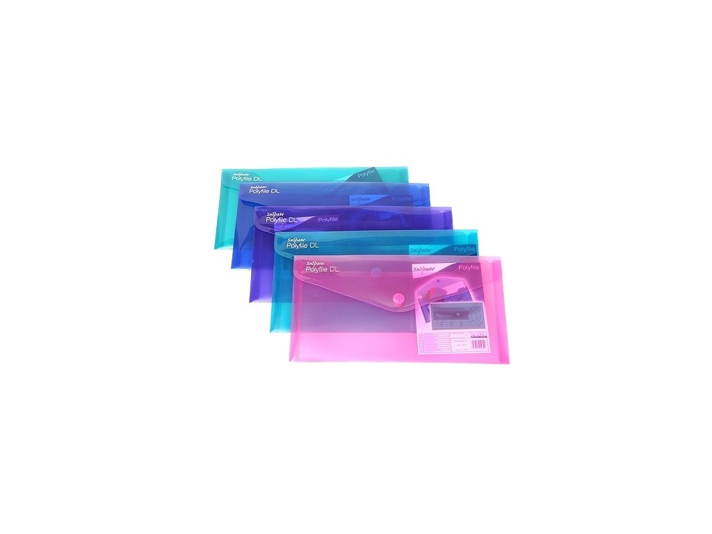 Spisové desky, materiál polypropylen, formát DL (obálka), průhledné, typ ELECTRA, zavírání jedním drukem. Mix barev. Základní balení: 1 ks Balení fólie: 5 ks Kód: 2371