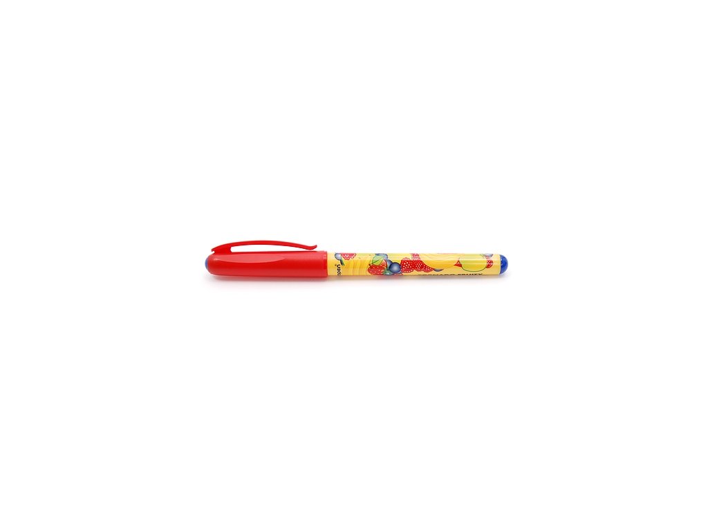 Oblíbené Tornado s trojúhelníkovou úchopovou částí s "masážními body", které aktivují na bříškách prstů hmatové receptory, a tím je zaručeno jisté držení a zdravé psaní bez únavy. Má tenkou, rovnoměrnou stopu písma, která se nerozpíjí a dá se vyzmizíkovat. Průměr kuličky 0,5 mm, šíře stopy 0,3 mm. Je naplněné modrým inkoustem, který u provedení AROMA krásně voní. Děti si mohou vybrat z pěti příjemných ovocných vůní (banán, jahoda, jablko, malina, borůvka). Mix barev.