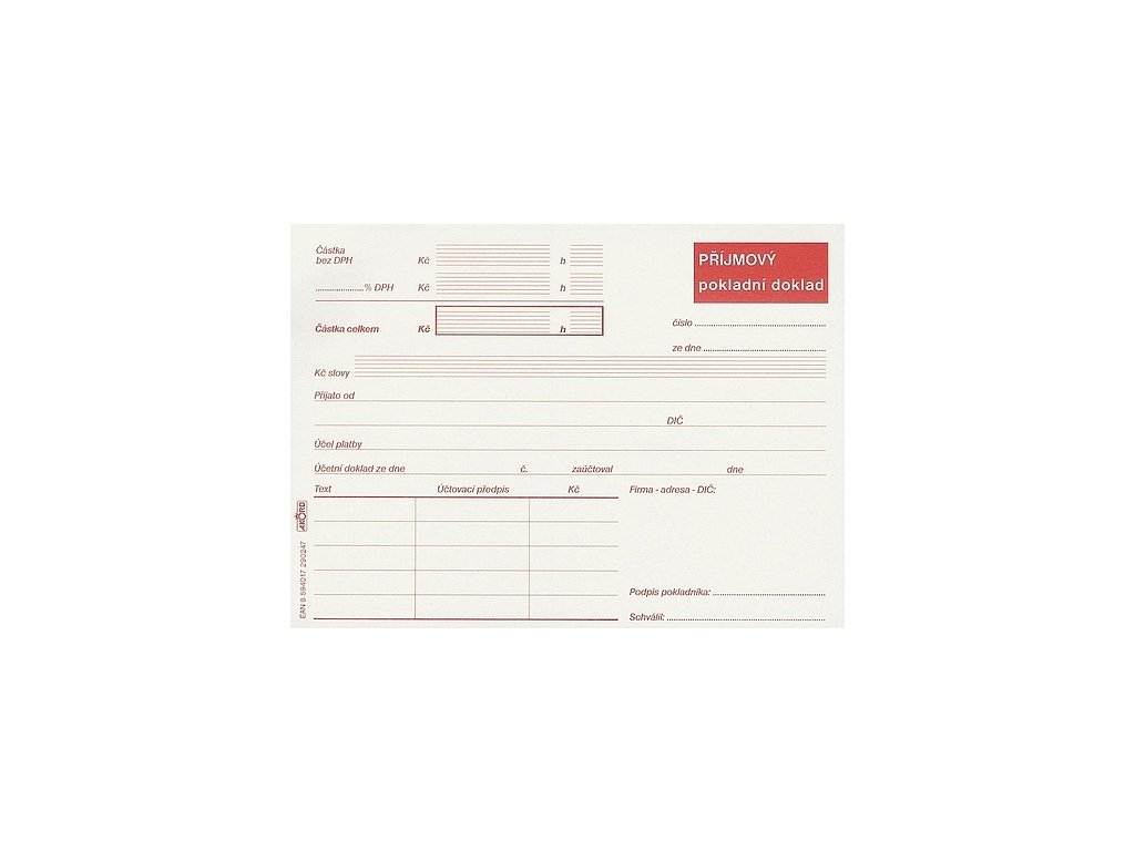 Příjmový pokladní doklad s DPH - typ B A0024