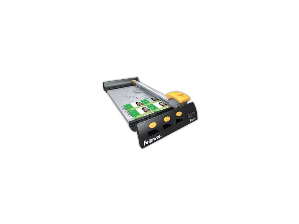 FELLOWES Proton A4 je kvalitní kolečková řezačka papíru s kovovou základnou. Její řezání funguje na principu tlaku proti gumovému pásu. Rotační řezné kolečko i gumový pás se dodává i samostatně a lze je tak po opotřebení dokoupit. Dostupné jsou také nástroje pro vlnkovaný řez, rýhování papíru a pro perforaci. FELLOWES Proton A4 samozřejmě obsahuje funkce pro bezpečné řezání SafeCut #. V balení naleznete také různá měřidla pro řezání rozlišných DIN formátů, fotek a různých zakřivených tvarů. FELLOWES Proton A4 je určena pro široké spektrum uživatelů v kanceláři nebo domácí kanceláři. Je vhodná pro menší zatížení.