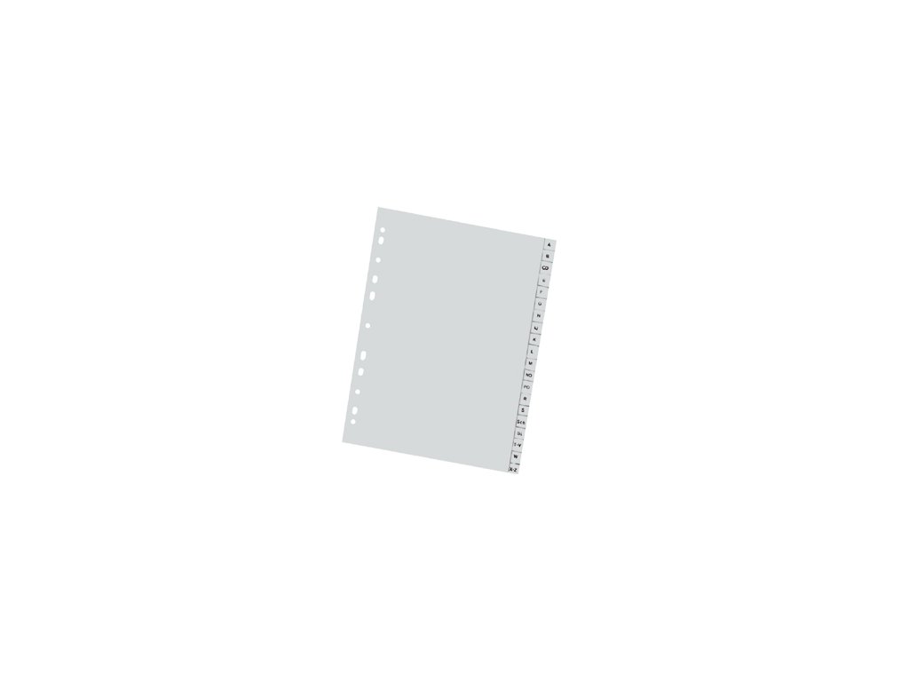 Rozřaďovač A4/20 dílů, euroděrování, plastový, A - Z, šedý. Kód: 1288