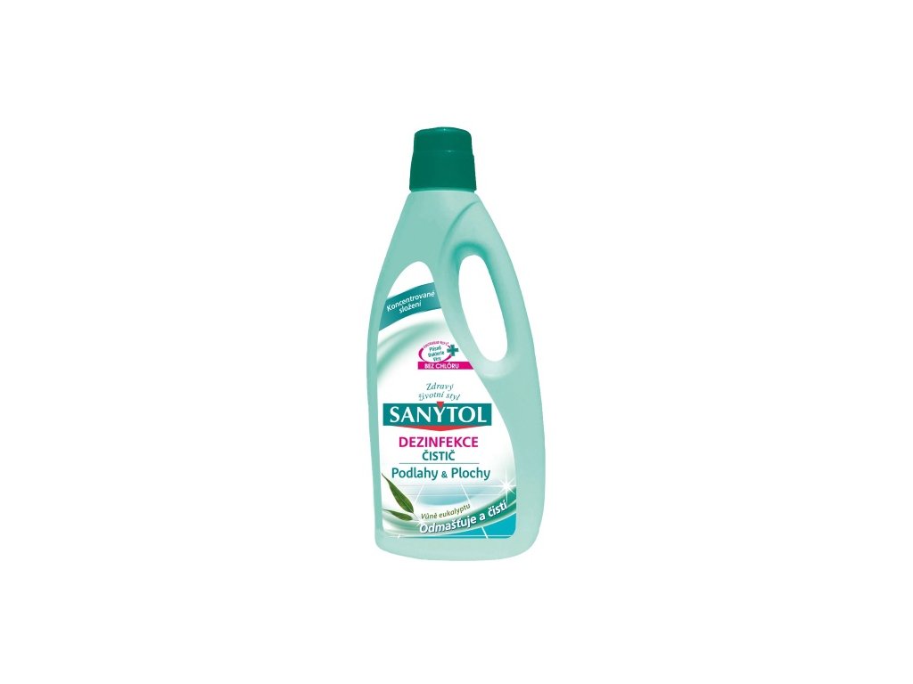 Sanytol čistič na podlahy a plochy díky trojímu účinku - bakteriálnímu, fungicidnímu a virucidnímu - dezinfikuje všechny materiály a plochy a ničí mikroby. Čistí, dezinfikuje a odmašťuje všechny plochy v domácnosti. Neobsahuje chlór a nezpůsobuje skvrny. Biologicky odbouratelný. S vůni eukalyptu.