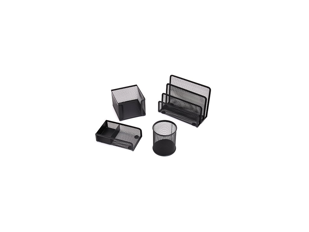 Drátěný set obsahující stojánek na dopisy, papírový špalíček, tužky a kancelářské sponky. Kód: 2724
