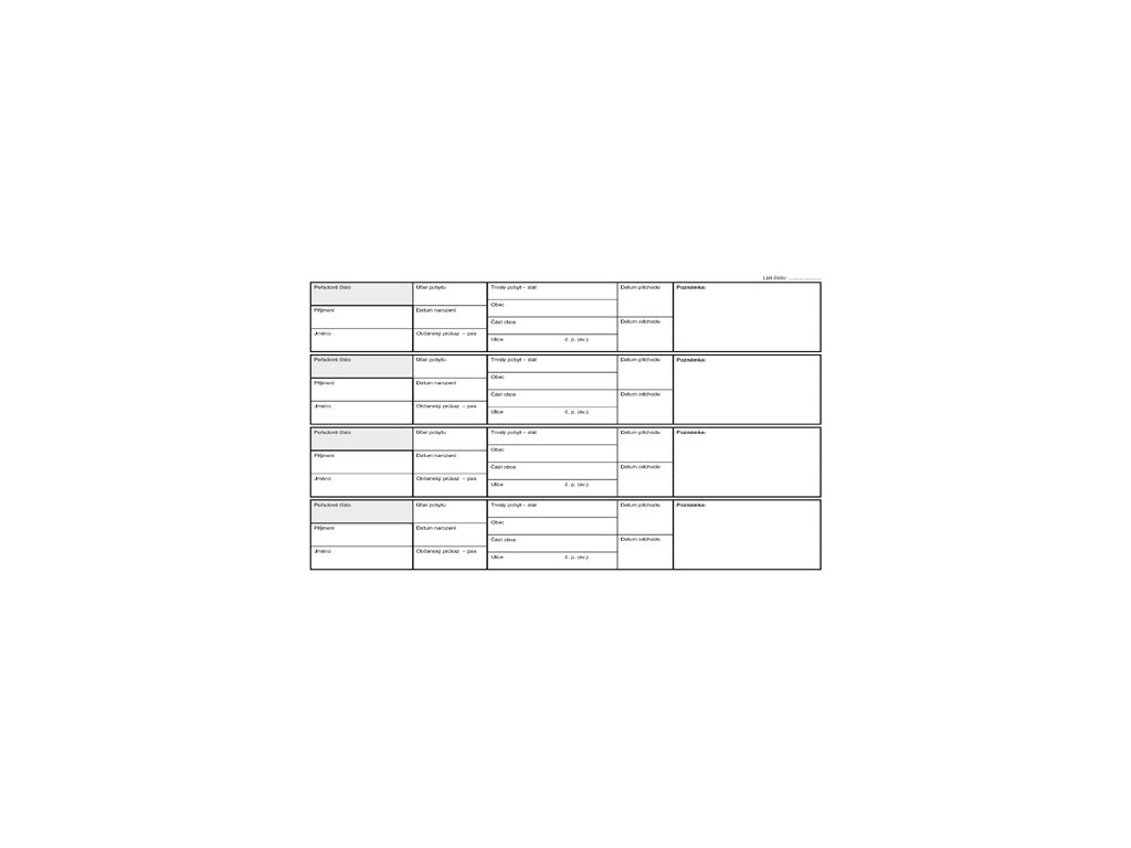 Ubytovací kniha ET520