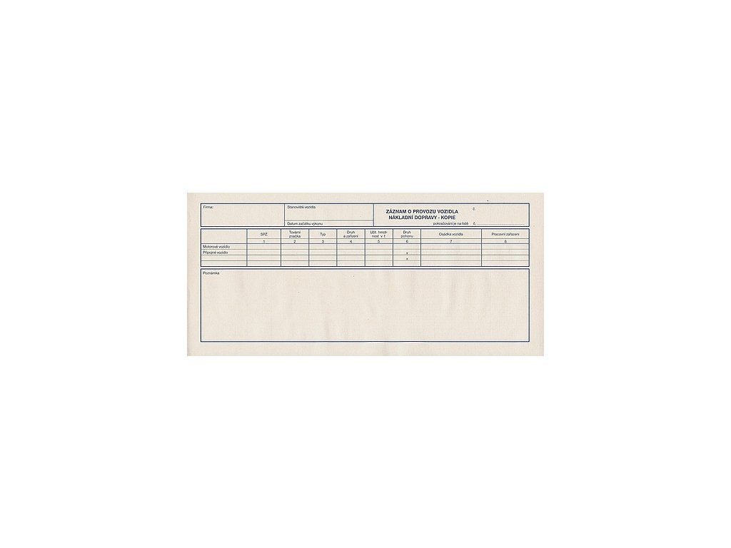 Záznam o provozu vozidel nákladní dopravy A0139
