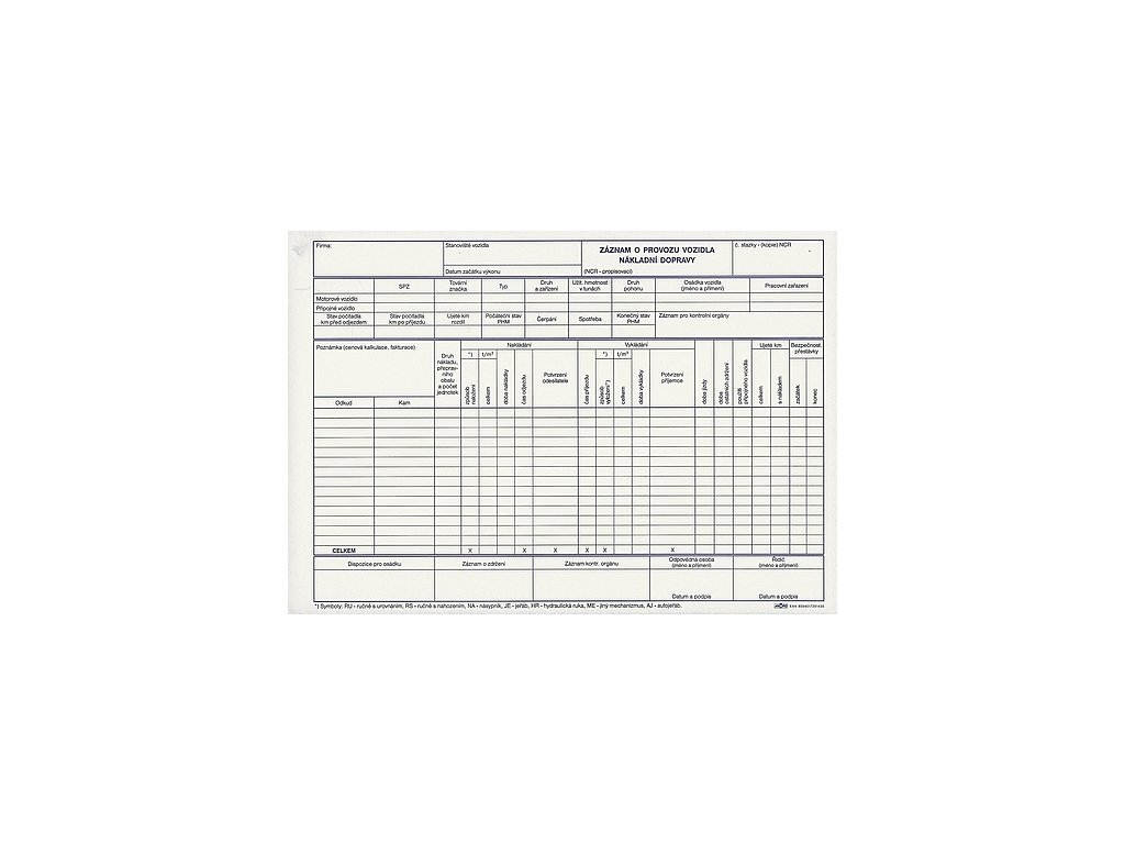 Záznam o provozu vozidel nákladní dopravy nečíslovaný A0143